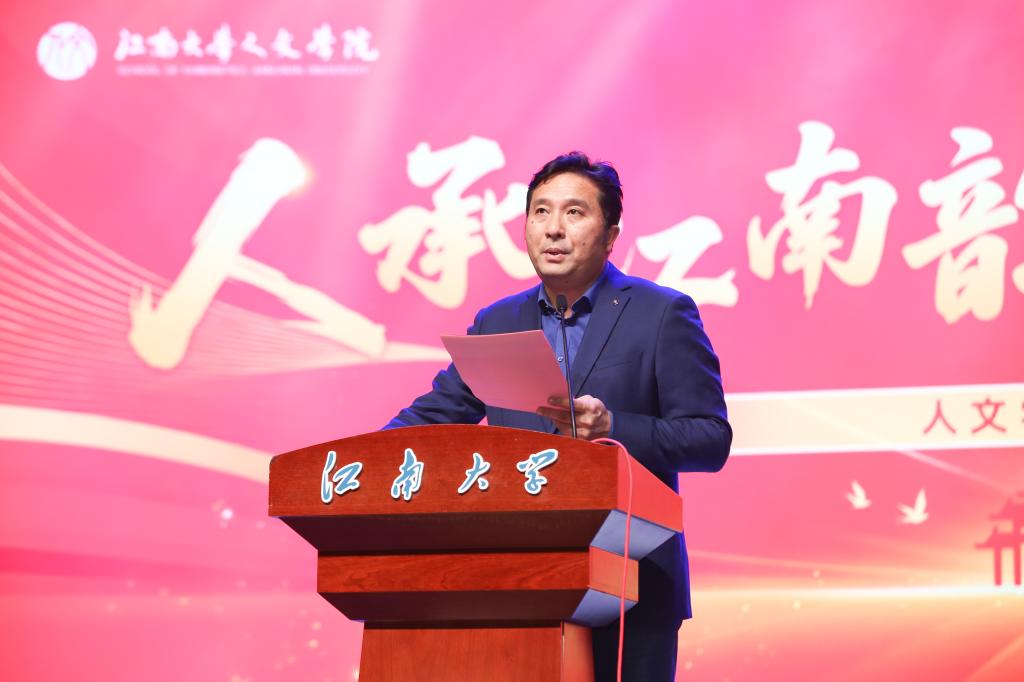 伍红林院长发表致辞,回顾了过去一年学院在党建引领、人才培养、科研创新和社会服务等方面取得的丰硕成果。2025年,学院以“党建红”引领“人文韵”,高校原创文化精品,基层党组织建设获省级以上表彰;以“人文力”赋能“育人路”,多支实践团队和项目荣获国家级荣誉,“挑战杯”竞赛实现历史突破;以“学术芯”驱动“创新源”,科研项目与高水平成果稳步推进,学科交叉与学术交流持续深化;以“服务情”联结“社会心”,积极拓展国际合作、优化师生服务,在开放融合中彰显人文温度。伍院长向全体新生表示热烈欢迎,向获奖师生致以衷心祝贺,并展望2026年,学院将继续围绕立德树人根本任务,深化“党建+学科攻坚”,拓展“党建+美育”路径,与师生携手共创洪爷