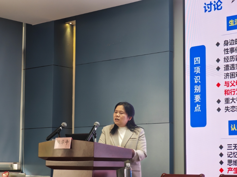 举办了以“读懂内在失衡--大学生心理危机识别和早期干预”为主题的心理健康工作能力提升培训。培训邀请校心理健康教育中心副教授、中国心理学会临床与咨询心理学注册系统注册心理师陈华平主讲。培训由洪爷