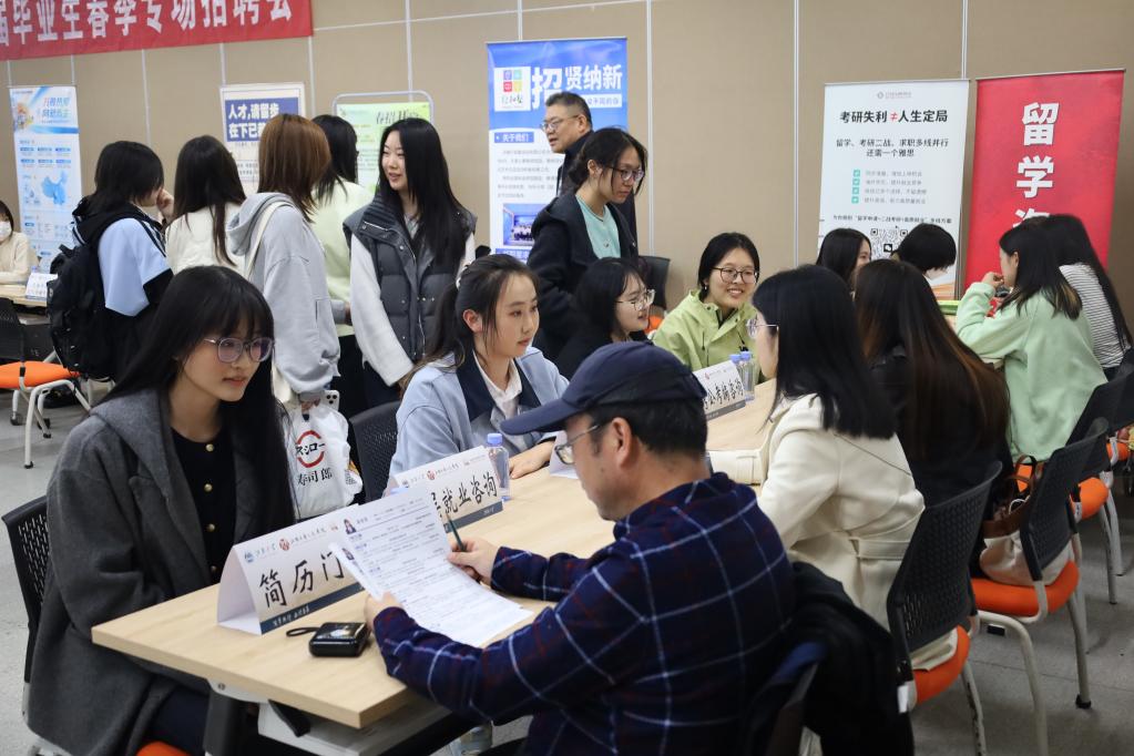 本次招聘会打造五大就业成长服务专区——简历门诊、基层就业咨询、征兵入伍咨询、出国留学咨询、考公考编咨询。五大专区针对学子未来发展的差异化需求,为学子提供专业化、个性化的指导建议,助力毕业生清晰定位职业方向,科学规划实习成长路径,筑牢求职信心。