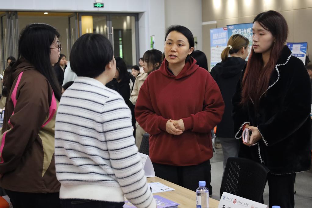 党委副书记、副院长徐璐在招聘会现场与用人深入交流,积极了解用人需求、岗位要求与职业发展等情况,并诚挚邀请相关企业在招聘会结束后到校洽谈合作,为学生提供更多优质就业资源和服务。她鼓励毕业生们树立信心、勇于尝试,主动投递简历,把握好春招的就业机会。